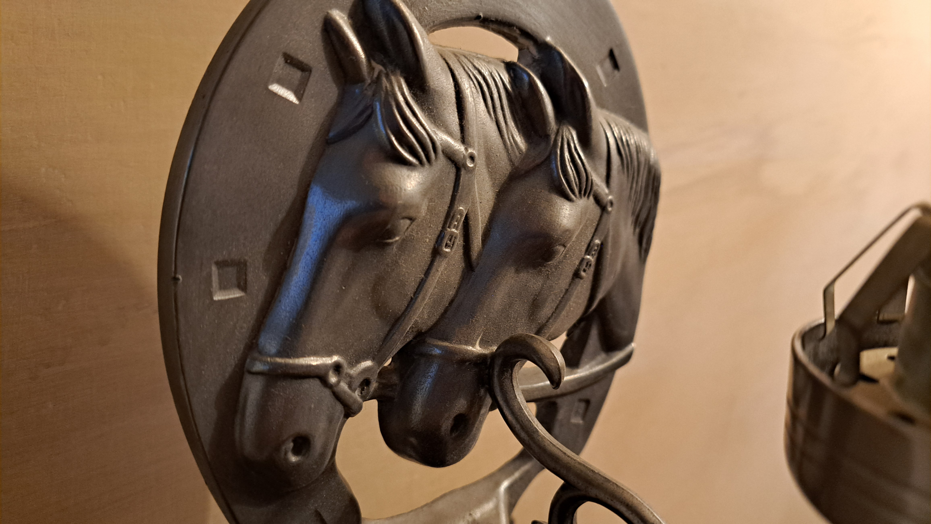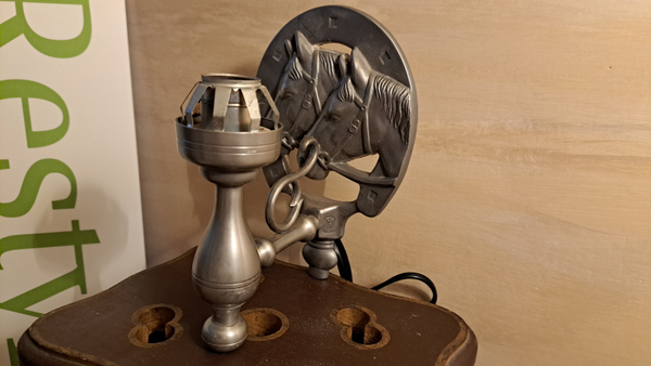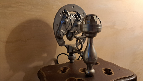 Antieke tinnen wandlamp/kandelaar –Hovenpaarden